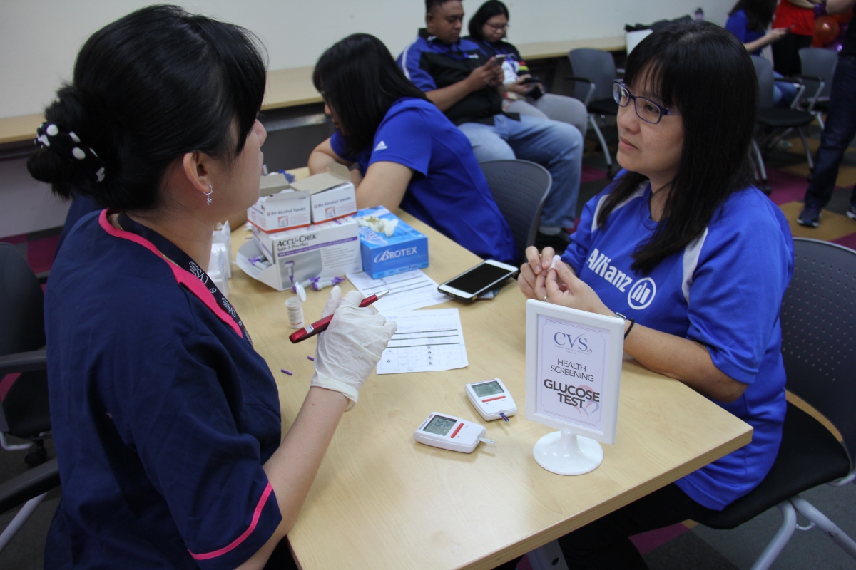 Medical Officers from Cardiac Vascular Sentral (CVS) giving blood test and advise to Allianz staff and employees.
