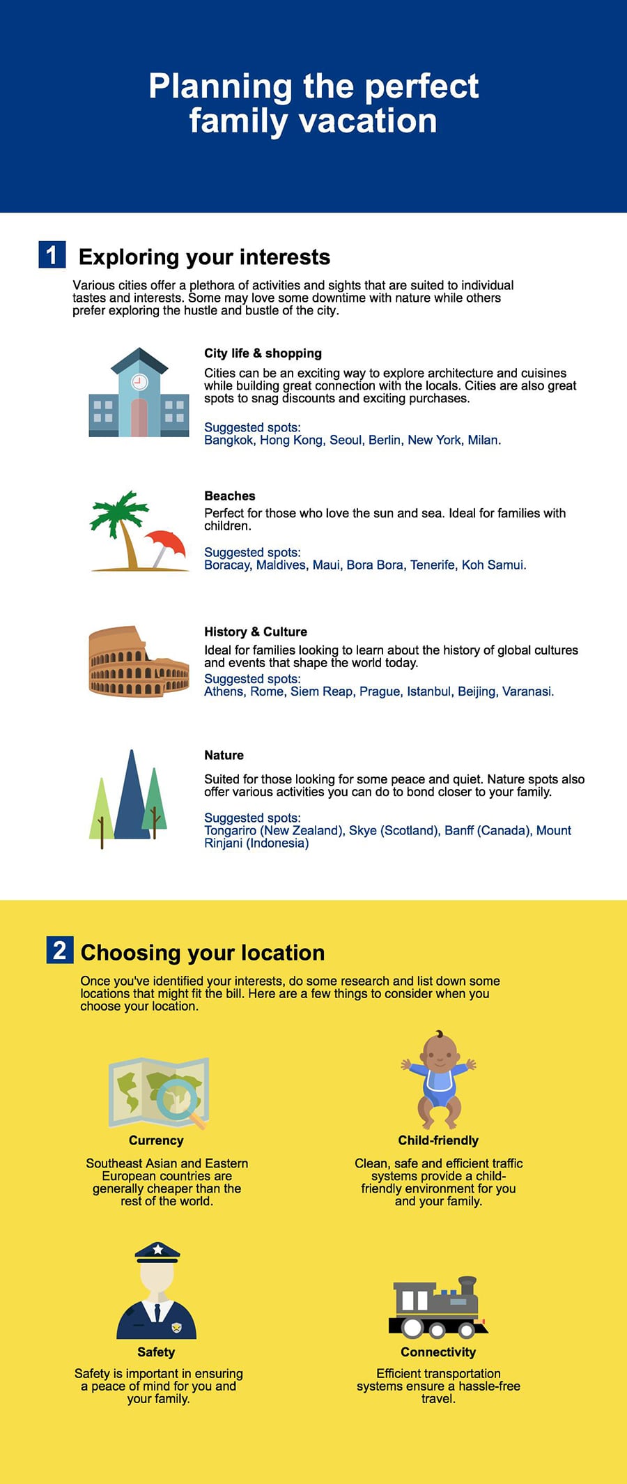 So, plan a trip! Detach from your daily stresses; teach your kids how to adapt to unplanned situations; expose them to new experiences; connect as a family; and create memories for the future. They can all be accomplished with a family vacation, and we have a few very simple steps for you to plan ahead for a hassle-free holiday.