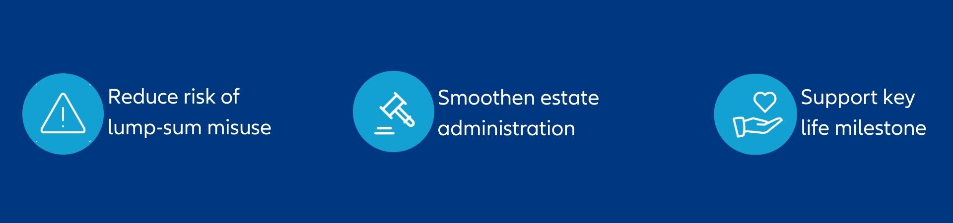 Your love can transform into a lasting promise, unfolding gracefully over time. With staggered death benefit payouts, your loved ones receive continuous guidance and protection, securing their future even in your absence.