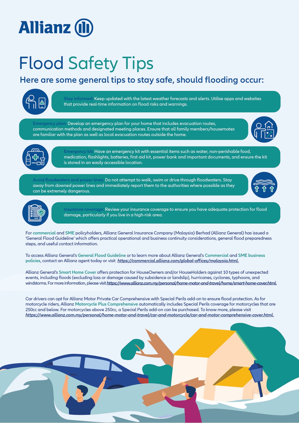 - “We cannot stress enough the importance of being prepared for floods. It is crucial to be aware of the risks and to take the necessary precautions to ensure we stay safe,” said Allianz General Chief Executive Officer, Sean Wang. “We are dedicated to providing our policyholders with the resources and support they need to safeguard their assets and ensure their safety during this time.”