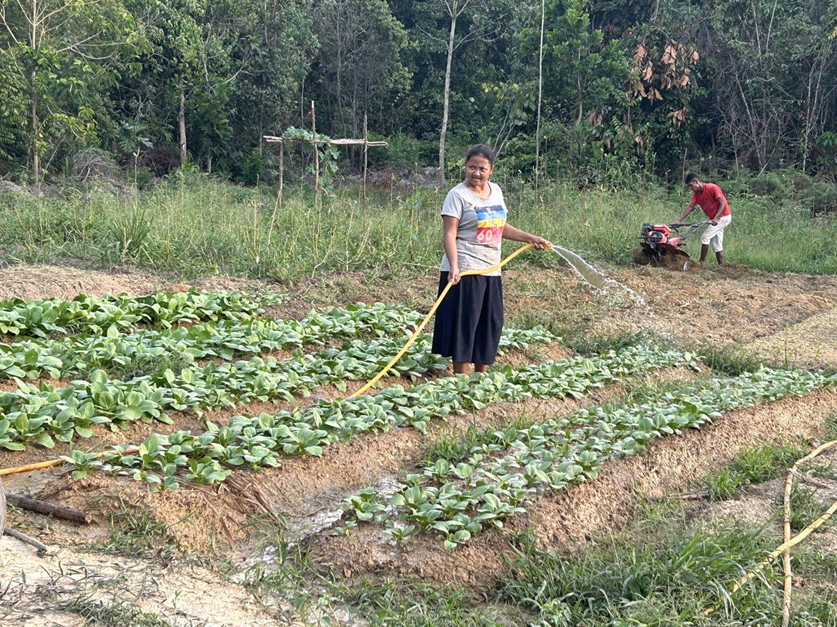 An Orang Asli community member tending to her vegetable plot as part of ongoing efforts to strengthen food security and sustainable livelihoods within the community.