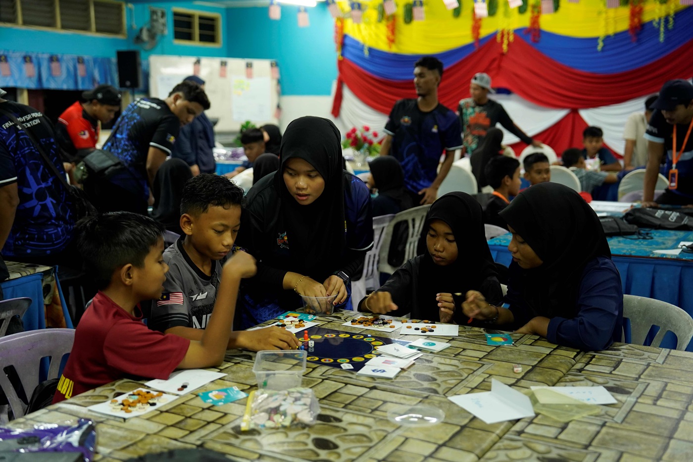 The school children engaged in a fun and educational ‘Money Matters’ board game activity during the Junior Entrepreneur Race Camp