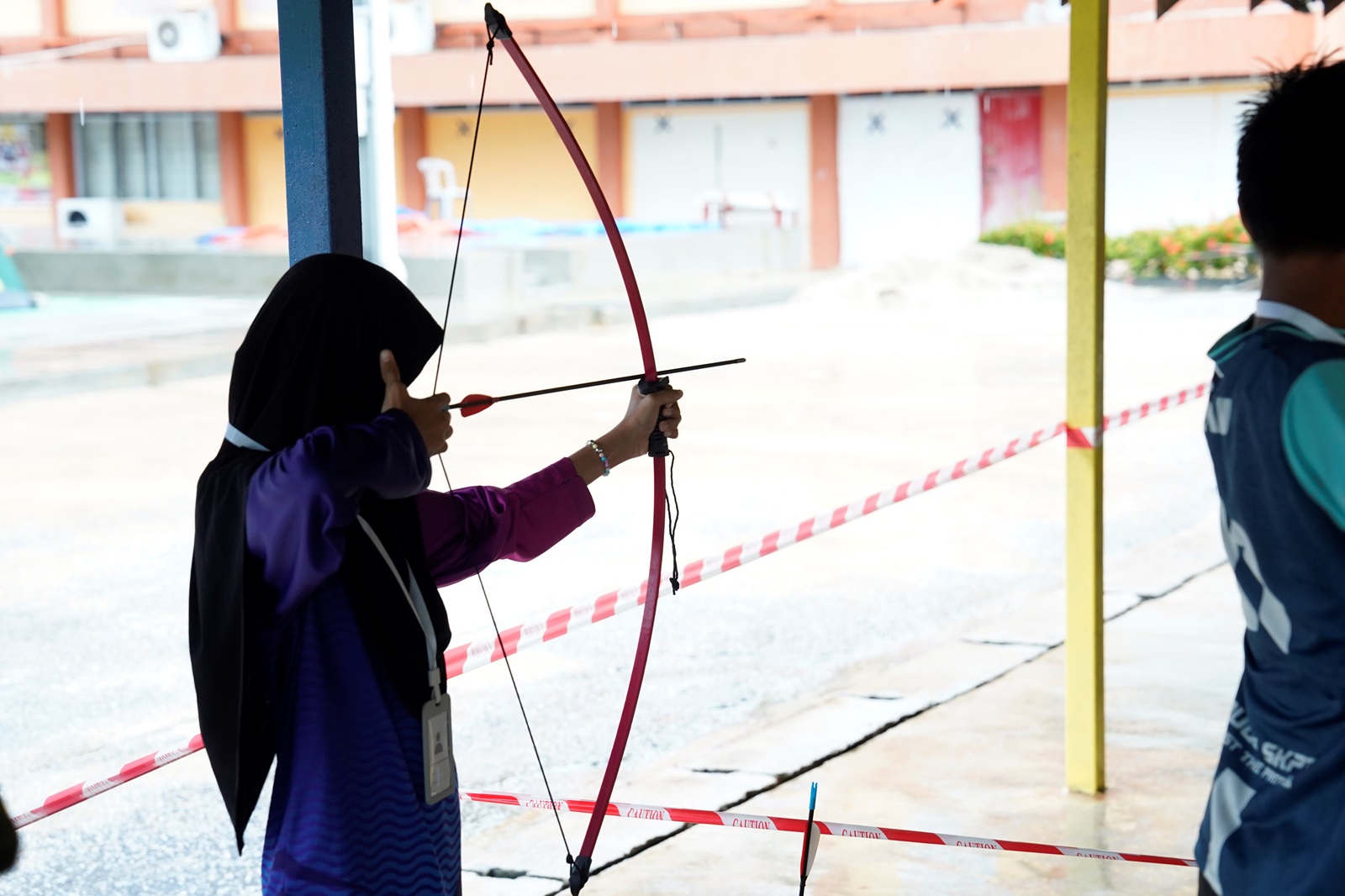 A participant takes aim during an archery session, showcasing their focus and determination at the Junior Entrepreneur Race Camp